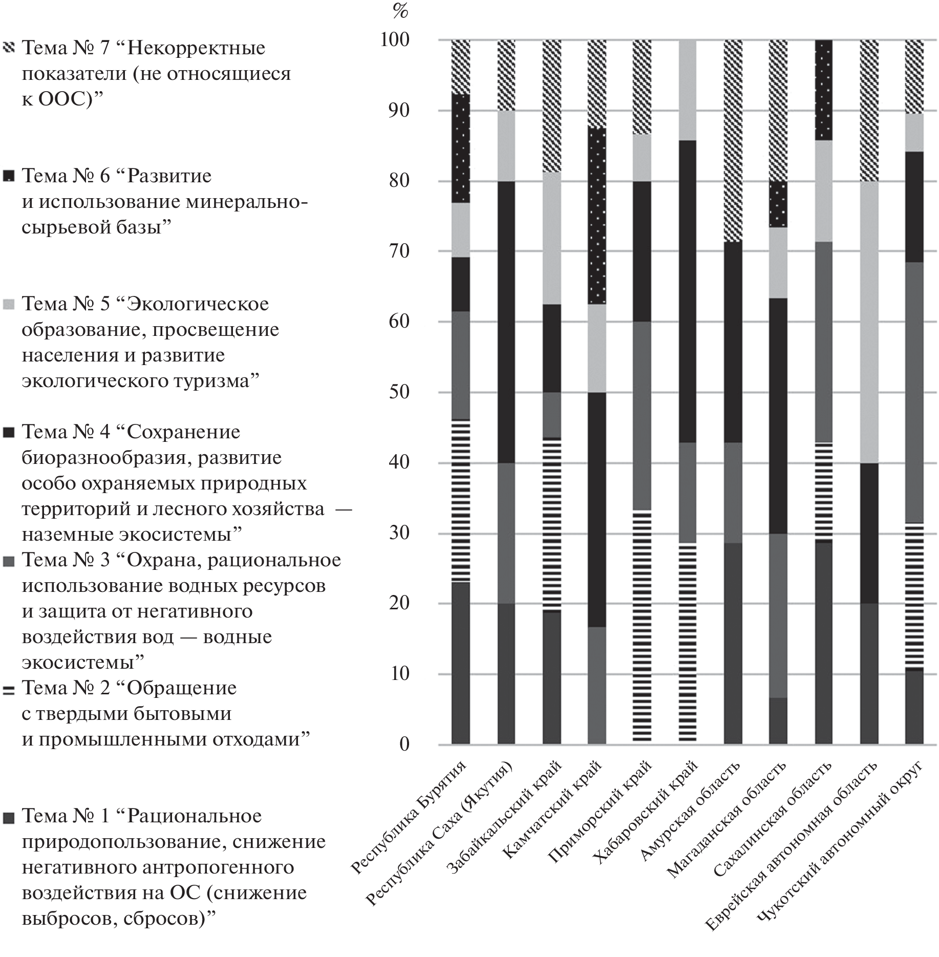 The current geopolitical and economic situation in the world makes it necessary to rethink the strategic plans of the country and its regions in a new way. It is forming the political and economic center of the “new world order” in the East. It will entail the correction of regional strategies, including those in the field of environmental well-being. That is why it is important to analyze the current situation, the measures taken to protect the environment, and the common regional environmental policy. The plan for its implementation in the form of specific tasks and methods (options) for their solution is presented in regional environmental programs developed in each subject. It is important to determine the current priorities of the environmental policy targets for the Far Eastern regions to demonstrate how the targets will be achieved. This is the purpose of this article. It was carried out an analysis of more than 150 indicators/indicators proposed in the regional programs to rank them according to the most typical tasks set; their differentiation in the context of regional differences, and the possibility of using them to evaluate the effectiveness of the implementation. It was identified that the main flaws were in the selection of used indicators. It is shown that the resource specificity of the Far Eastern Federal District economy also affects environmental programs. For example, in the environmental programs of four subjects, a significant number of indicators (up to 25%) are focused on resource industries and are not directly related to environmental protection. It was found that a significant part of the indicators is not correct in content and do not have clear quantitative guidelines, which makes it impossible to assess the achievement of goals. It requires a significant refinement of the structure and a more careful selection of target indicators for most of the environmental programs of the subjects of the Far Eastern Federal District.