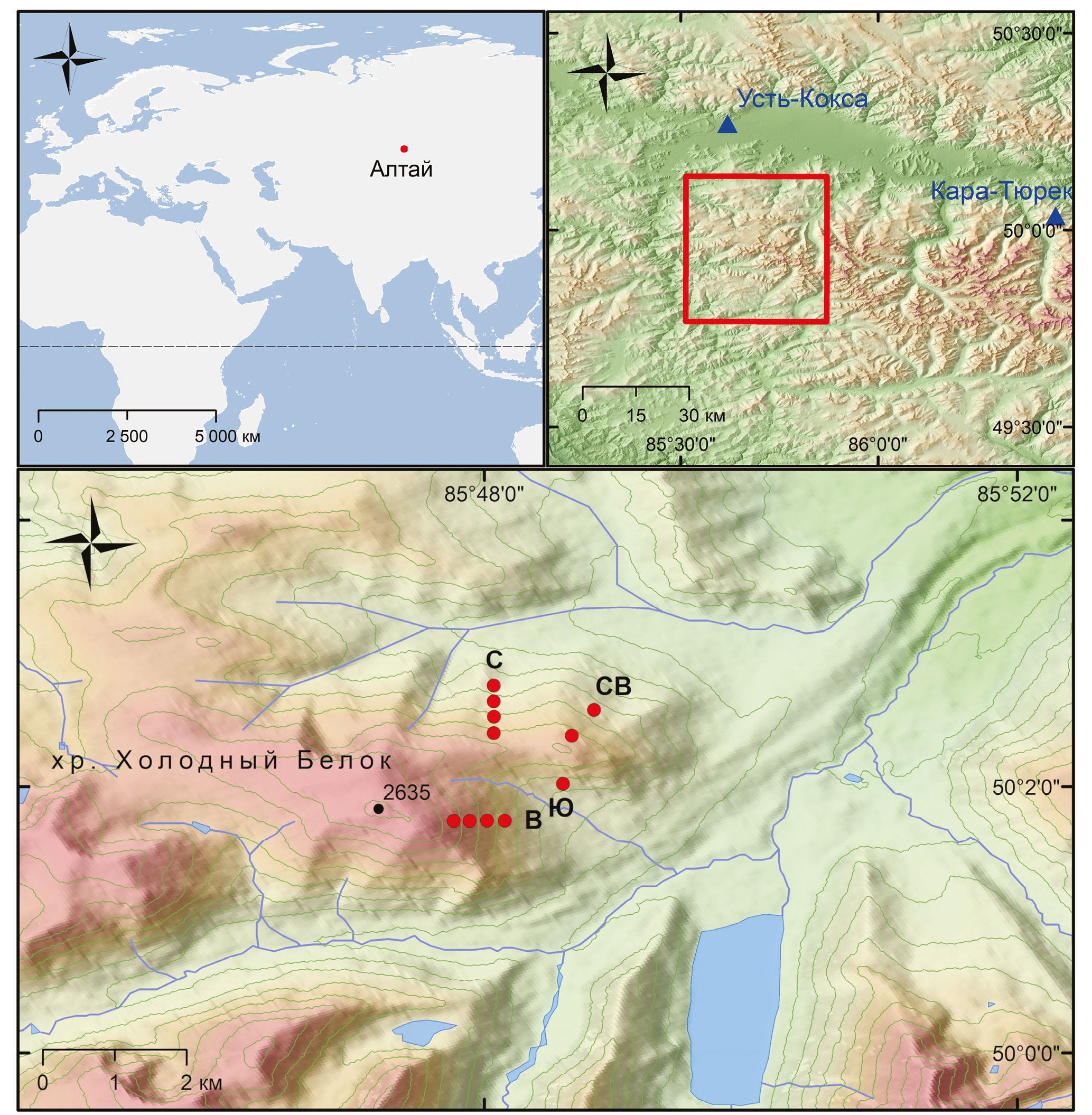 Алтае-Саянская физико-географическая страна – горный регион с современным оледенением в центральной части евразийского континента, где в основном климат определяет высотное положение границы распространения древостоя (Volkov et al., 2021). Биогеографическая изоляция этих гор и особенно их расположение в окружении степей и полупустынь приводит к высокому уровню эндемизма и предполагает большое биоразнообразие и чувствительность региональной экосистемы к текущему периоду потепления климата (Volkov et al., 2021).
