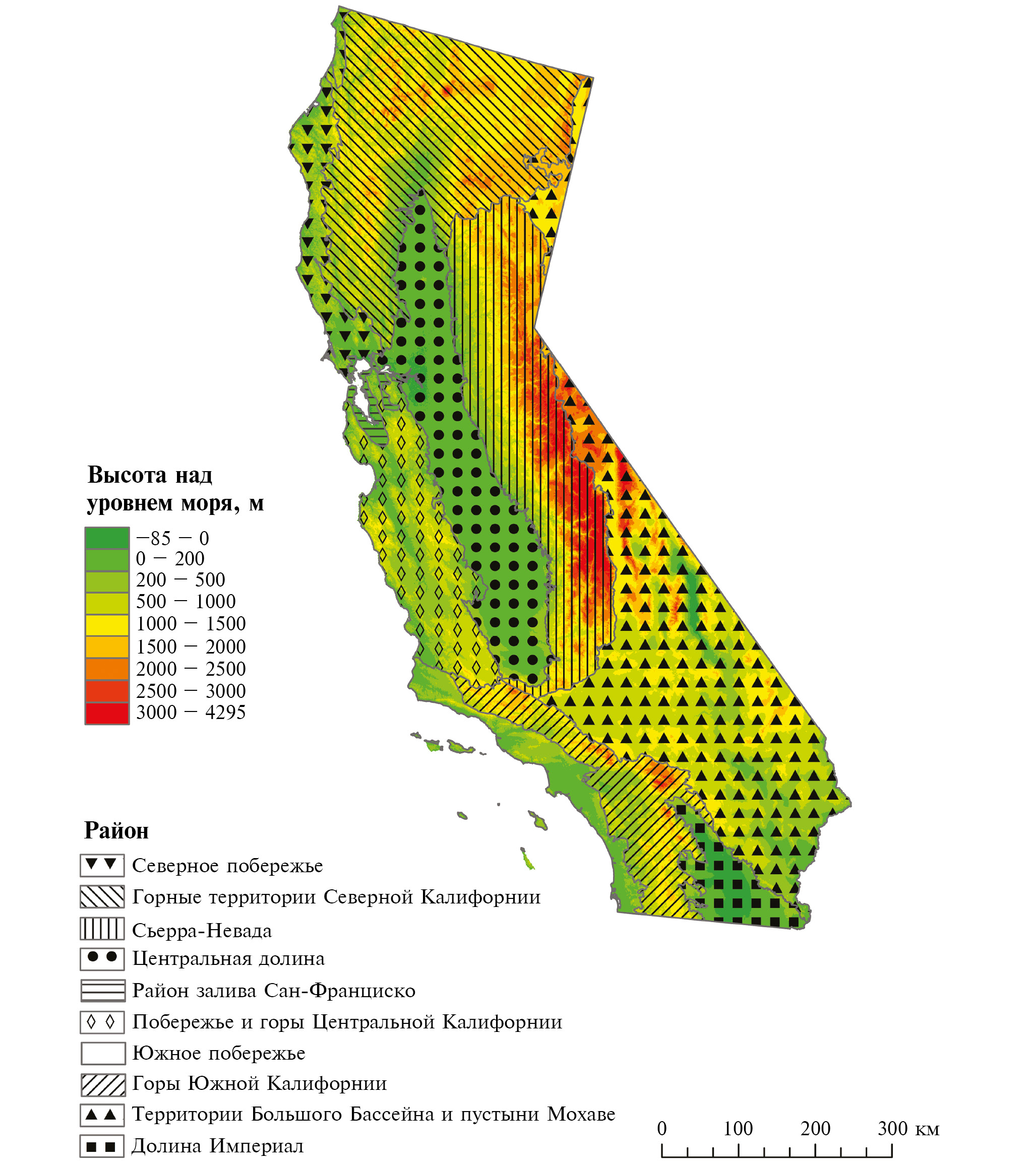 Штат Калифорния – чрезвычайно дифференцированный регион в природно-хозяйственном отношении (рис. 4), что обусловлено геоморфологической, климатической и ландшафтно-экологической неоднородностью его территории (см. табл. 1). Поэтому вполне логичным представляется выбор природного районирования в качестве основы для систематизации адаптационных мероприятий на территории штата Калифорния.
