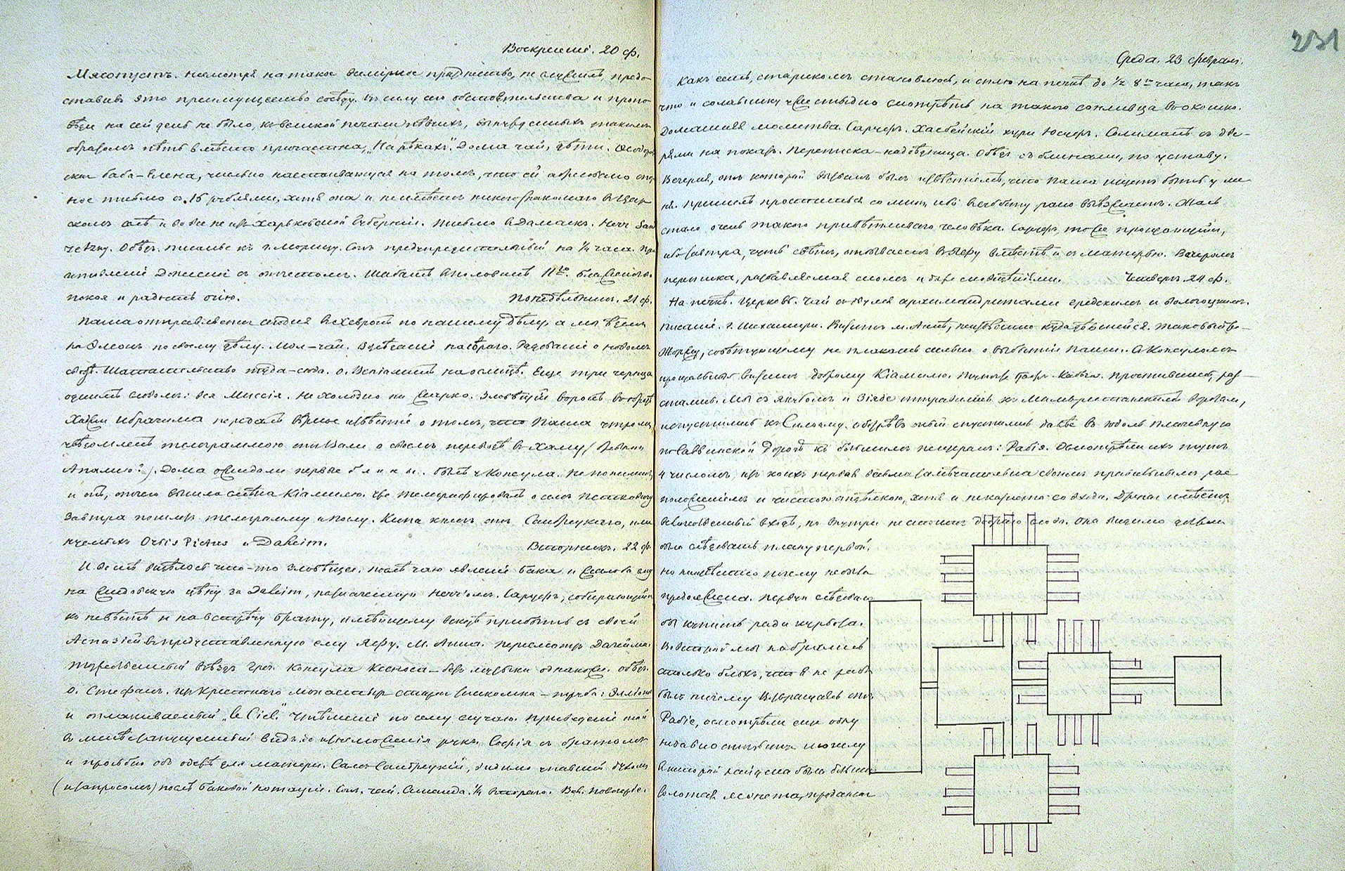 Ил. 2. Страницы из дневника архимандрита Антонина (Капустина) с обмерным планом Большой (Гранатовой) пещеры в Румание (скальная гробница римского времени, Восточный Иерусалим). 1875 г. Один из первых примеров исследовательских работ на «русских участках». 1872–1875 гг. РГИА. Ф. 834. Оп. 4. Ед. хр. 26. Л. 230–231