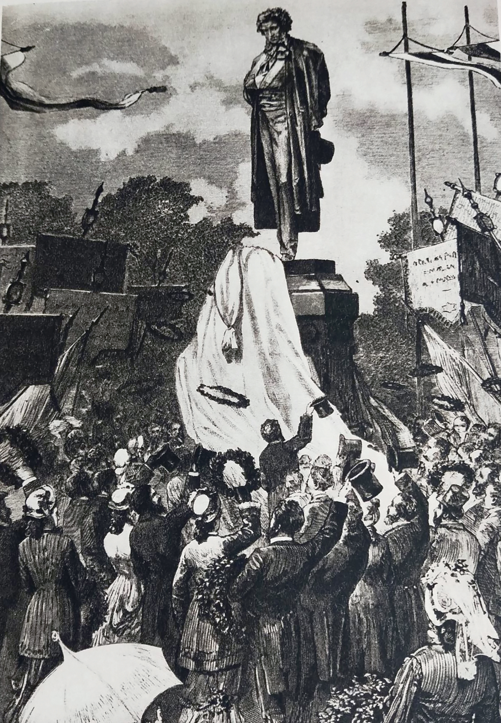 Ил. 1. Открытие памятника Пушкину в Москве. 1880. Гравюра с наброска Николая Чехова