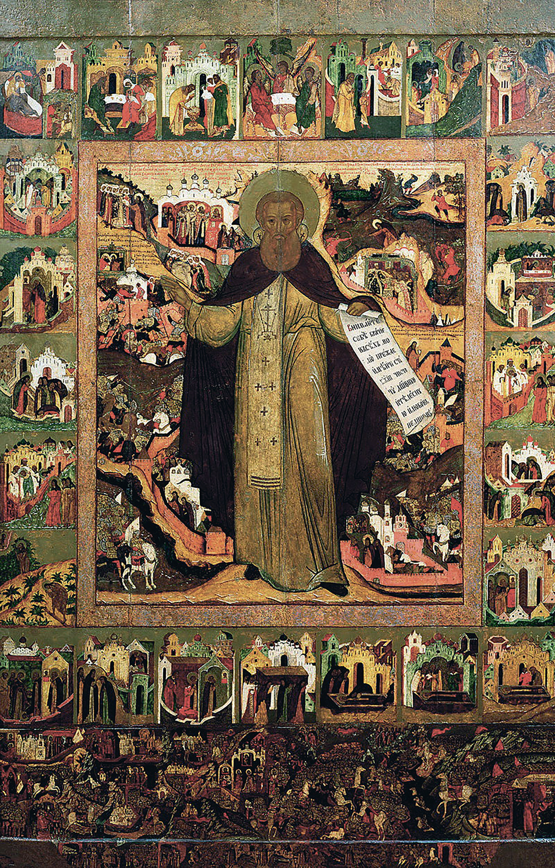 Ил. 3. Преподобный Сергий Радонежский с житием и «Сказанием о Мамаевом побоище» (сер. XVII в.). Ярославский художественный музей
