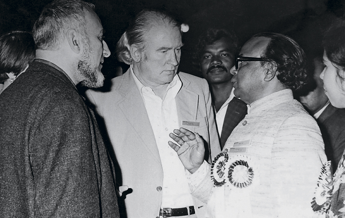 Ил. 15. С.А. Арутюнов и Ю.В. Бромлей беседуют с Президентом X Конгресса МКАЭН проф. Л.П. Видьярдхи в г. Дели, Индия. 1978 г.