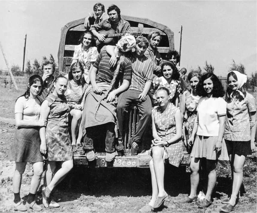 Ил. 4. Студенты-этнографы на полевой практике в Горьковской области. Среди них: Л.К. Гостиева, М.М. Керимова, М.Ю. Мартынова, О.Б. Наумова, А.И. Пика, Т.В. Таболина. Руководитель практики — Л.Б. Заседателева. 1974 г.