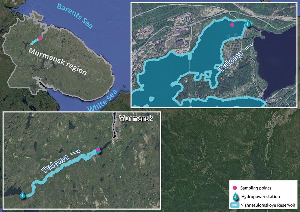 The Murmansk region is one of the areas with a high level of electrical energy consumption, which is determined by the high energy intensity of mining and processing enterprises and non-ferrous metallurgy. Around two-thirds of the total electrical energy consumption in the region is accounted for by these sectors (Kuznetsov et al., 2020). The creation and development of the electric power system on the Kola Peninsula in the initial stage were primarily reliant on the construction of hydroelectric dams (Kuznetsova and Konovalova, 2021). Between 1930 and 1972, the construction of dams on certain large lakes and rivers in the Murmansk region, resulted in the creation of approximately 20 reservoirs. Reservoirs can be classified as natural-technogenic geosystems, the development of which occurs under the influence of internal (natural processes) and external (various types of anthropogenic and natural influences) factors (Dvinskikh and Kitaev, 2008; 2014). Artificially created ecosystems of reservoirs, combining elements of lotic and lentic systems are characterized by an unstable balance of ecological interactions among their four main components: the atmosphere, hydrosphere, lithosphere and biosphere. It is determined by a regulated hydrological regime, usually different from the natural one (Dvinskikh and Kitaev, 2014). Especially in the conditions of the Extreme North, this leads to disruptions in biogeochemical cycles, the seasonality of biotic processes, and, ultimately, a decrease in biological diversity and the transformation of the hydrobiotic community structure.