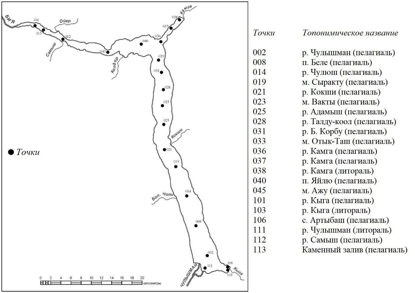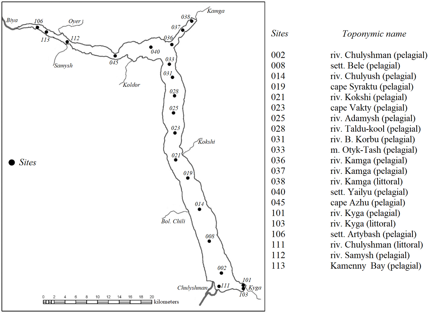 2. Fig.1. Sampling sites in the water area of Lake Teletskoye