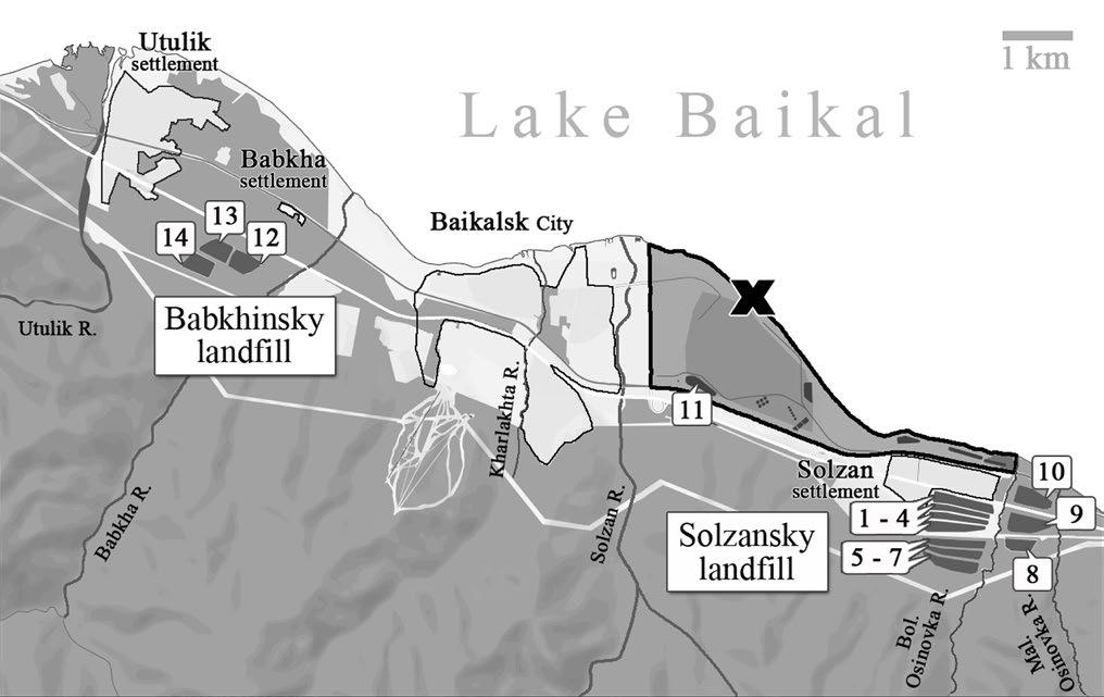 The mill with two big landfills and 14 waste pits occupied a vast territory (Fig. 3). The groundwater layer is found between 4–5 m to 20–25 m depths on the territory of the BPPM. At the shoreline of Lake Baikal, the groundwater level is located close to the Earth’s surface (Anikanova, 2009). Since 2000, the source of wastewater contamination at the BPPM’s site has been localized by a protective groundwater dam. However, a special plant’s service had registered an increase in the chemical concentration in the groundwater in 2007 (Anikanova, 2009). This fact reasonably indicates the depreciation of the protective constructions, the state of which is now not monitored. According (Kolotov et al., 2021) waste pits No. 1 and 8 of Solzansky landfill showed a high level of groundwater pollution.