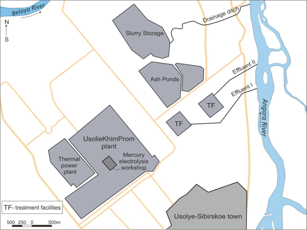 Fig.1. Schematic map of Usolye-Sibirskoye industrial zone.
