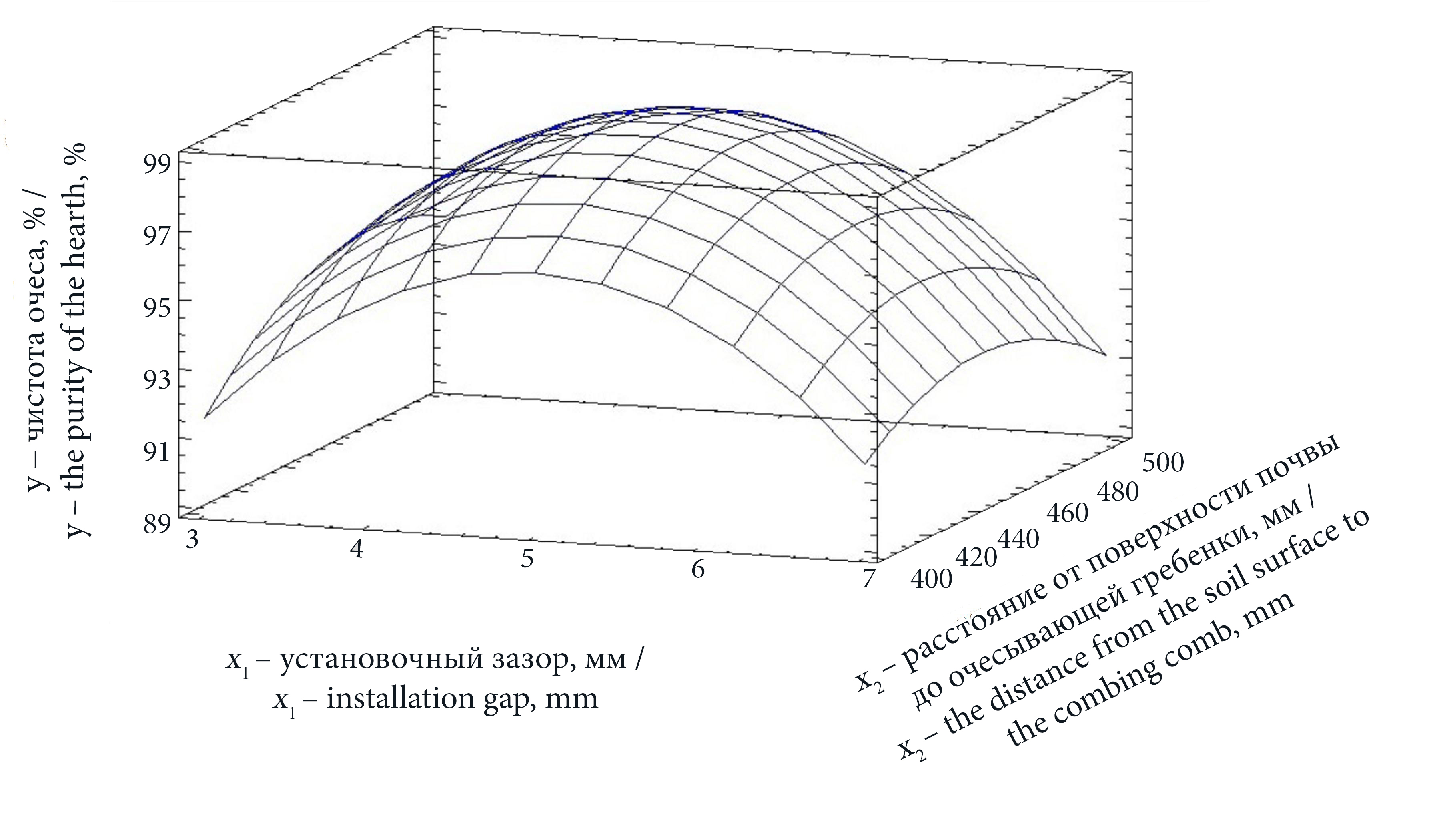 Максимальная чистота очеса достигается при установочном зазоре очесывающих гребенок 4,8 мм, расстоянии от поля до очесывающей гребенки 0,46 м и частоте вращения очесывающего барабана 6,03 с–1.