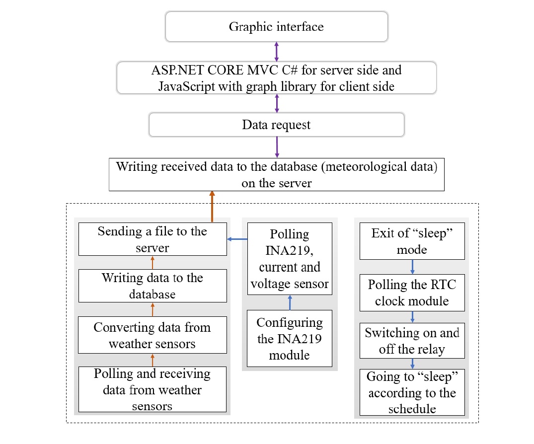 Fig. 3. Architecture of hardware-software complex with web interface for local meteorological conditions monitoring data