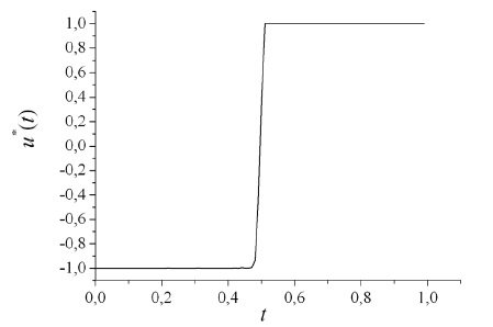 В результате решения задачи (9)–(13) с помощью разработанного алгоритма определено оптимальное управление u*(t) (рис. 1) и соответствующая ему оптимальная траектория процесса (рис. 2). При этом а