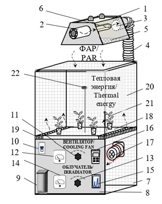 21 – plants; 22 – spectrophotometer sensor PAR