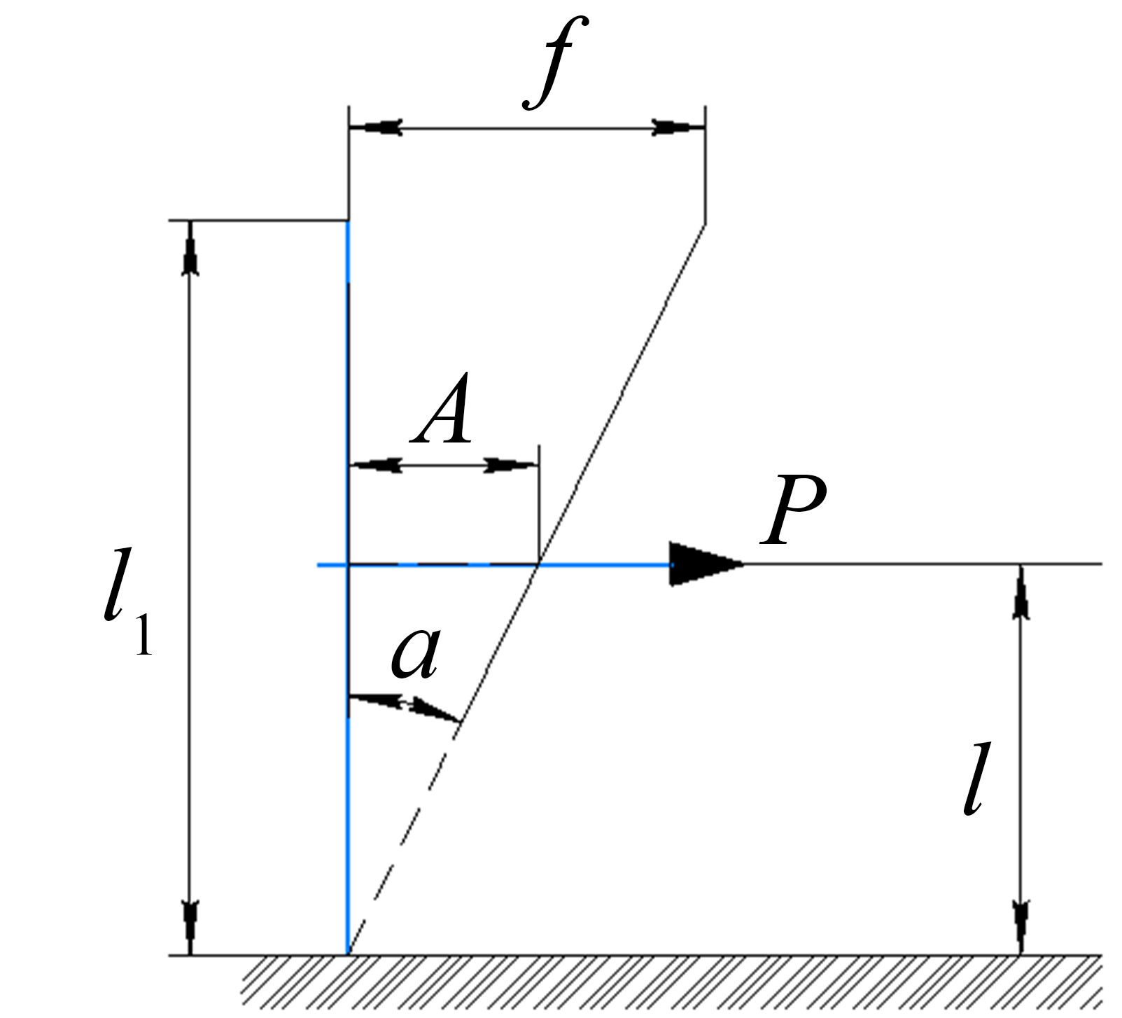Note: P – impact force, N; ℓ – impact force arm, mm; ℓ1 – length, mm; f – maximum transverse bending of the stem, m; A – distance at which the stem deflected by the impact force, mm; a - deflection angle, degrees.