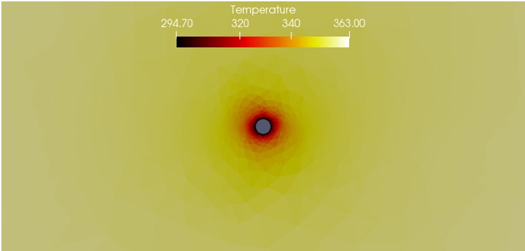 В настоящей статье разработан и реализован вычислительный алгоритм для моделирования динамики изменения температуры и давления в нефтеносном пласте. Алгоритм построен на основе метода Галеркина с разрывными базисными функциями на разнесенных неструктурированных сетках с применением технологии параллельных вычислений MPI. С использованием разработанного программного кода была исследована задача закачивания в пласт охлаждающей жидкости через вертикальную нагнетательную скважину. Можно сделать вывод, что результаты моделирования показывают адекватные картины для температурного поля и поля давления в пласте, соответствующие заданным начально-краевым условиям. Для более точного моделирования рассматриваемого процесса в дальнейшем планируется решать данную задачу в трехмерной постановке на неструктурированных тетраэдральных сетках.
