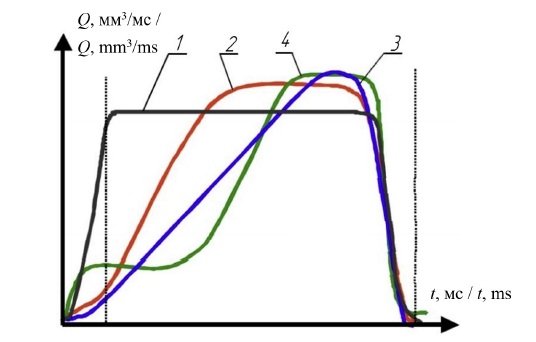 Fig. 1. Types of characteristics of the main injection: 1 – rectangular shape;