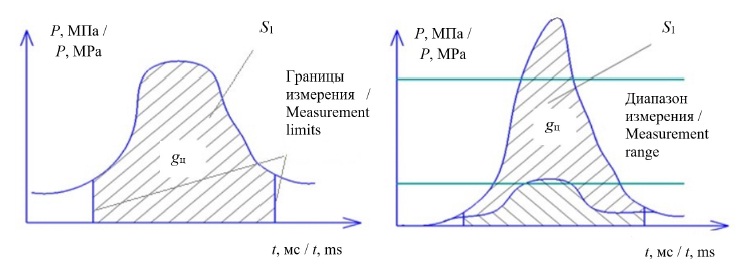 Изучение опубликованных работ и соответствующих патентов Р. М. Баширова, Л. В. Грехова, С. Н. Девянина, С. Н. Кривцова, В. А. Маркова, Б. Н. Файнлейба и др. позволило выявить наиболее эффективные способы испытания форсунок с электронным управлением [5–9]. Проанализированы промышленные методы и средства фиксации характеристики топливоподачи, использующиеся фирмами Robert Bosch GmbH, Hartridge, Moehwald GmbH, IAV GmbH, EFS, Loccioni Group, Ono Sokki [10–13]. Способ впрыска топлива в длинный трубопровод является наиболее перспективным для разработки измерительного модуля и для фиксации характеристики топливоподачи [14]. Метод предложен фирмой Bosch и применяется в ряде исследований. Цикловой подачей здесь является площадь под кривой давления в адаптере впрыска. Основные недостатки ‒ размытые границы начала и конца рабочего цикла и узкий диапазон давления (рис. 2). Это существенно ограничивает пределы подачи топлива [15].