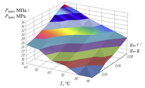 Видно, что эмпирический критерий Fэмп меньше критического Fкрит, значит, проверка адекватности подтверждает однородность данных выборки и сходимость результатов, что доказывает точность полученной математической модели и подтверждает выявленные закономерности воздействия температуры тестовой жидкости на максимальное давление и площадь под кривой7.