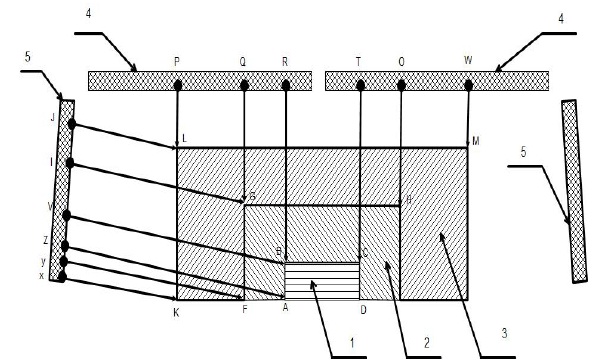 Продукт может быть различного размера: на рисунке 1 показан минимальный 1, средний 2 и большой 3. Для создания равномерного поля на маленьком пространстве задействованы греющие слои у горизонтальных нагревателей из области RT, а у вертикальных ZV. Соответственно, равномерное поле на среднем размере обеспечивается областями QO и YI, а на большом размере областями PW и XJ.