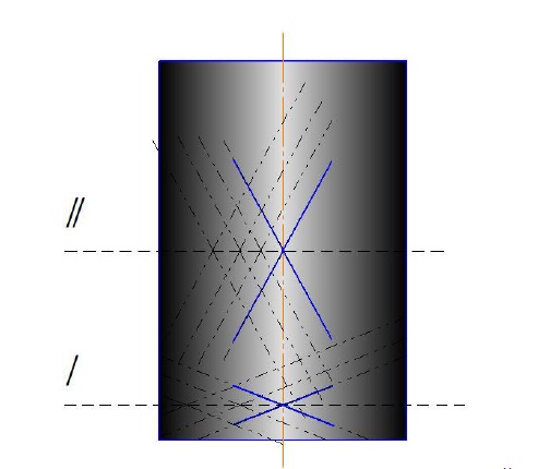 a) движение вверх; b) движение вниз; I, II – варианты сечения с разными углами нанесения волокна композита;