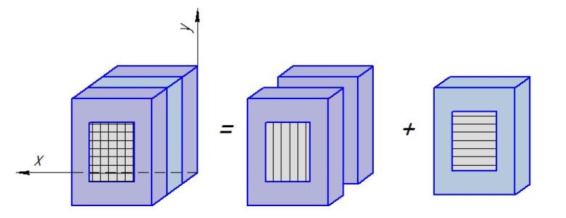 Анализ выражения (5) показывает, что коэффициент жесткости в многослойном композитном покрытии не зависит от характера чередования единичных слоев. Это означает, что многослойные покрытия, у которых единичные слои будут иметь равный коэффициент жесткости, можно принимать за единый слой определенной толщины. К таким многослойным покрытиям относятся материалы с уложенными однонаправленными слоями под углом φ.