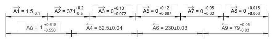 В данном случае размерная цепь будет описываться уравнением (1), в этом случае звенья A1, A2, A3, A5, A7, A8 будут увеличивающими, остальные – уменьшающими.