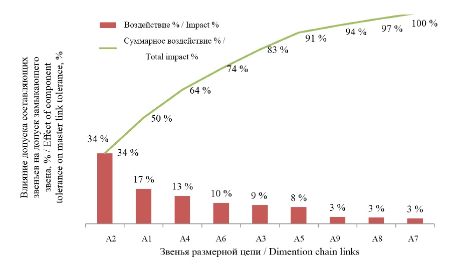 Оценку влияния составляющих звеньев на замыкающее звено проводили с использованием диаграммы Паретто (рис. 7).