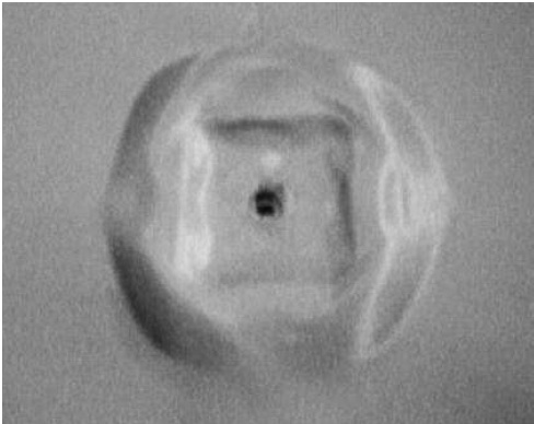 Fig. 2. Point of impact of a bullet against a Kevlar vest with a layer of non-Newtonian fluid: square –