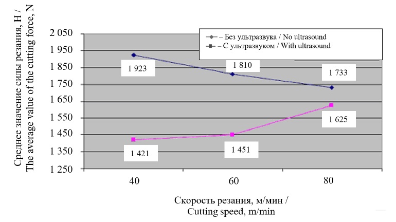 Для оценки полученных результатов экспериментальных исследований значения измеряемых параметров выбирались таким образом, чтобы серединой была зона перехода от традиционного резания к ультразвуковому.