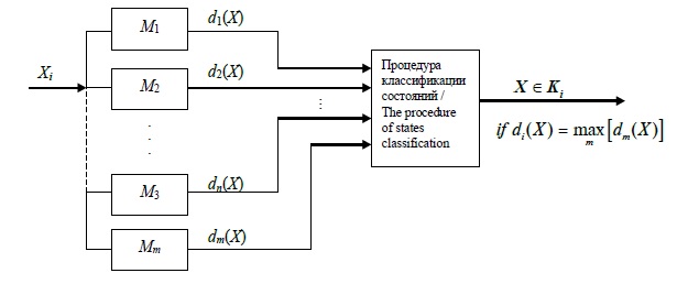 i – class number; d(Xi) – the result of classification by the i-th model; X1, X2,..., Xn – states patterns;