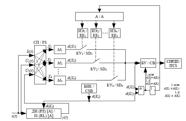 Основным элементом в комплексе автоматизации технологического процесса перевозок и обеспечения безопасности движения поездов являются системы контроля состояний рельсовых линий (СКРЛ). Основными требованиями к СКРЛ, формирующими информацию о занятости, свободности и исправности рельсовых линий (РЛ) контролируемых участков пути, являются: надежность программно-аппаратных средств и безопасность функционирования модулей распознавания и классификации состояний РЛ, а также обеспечение квазиинвариантности к влиянию различных дестабилизирующих воздействий (к помехам от тягового тока, флуктуациям первичных параметров рельсовой линии, нестабильности параметров источников питания и др.). Классификаторы РЛ, широко используемые в настоящее время на сети магистральных железных дорог, имеют разомкнутую структуру и действуют автономно на ограниченном участке рельсовой линии, к началу которой подключен генератор сигнала опроса u1(t), нагруженный в конце на входное сопротивление приемника, реагирующего на уровень выходного сигнала u2(t) [1; 2]. Особенностью работы классификаторов состояний является то, что они функционируют в условиях воздействия интенсивных помех, имеющих физические характеристики сигнала опроса первичного датчика, проходящих по рельсовым линиям и суммирующихся на произвольной координате с сигналом опроса чувствительного элемента датчика. Эти воздействия представляют собой помехи fa(t), аддитивно воздействующие на сигнал опроса РЛ, а также на чувствительный элемент датчика – рельсовые линии. Следовательно, на выходной сигнал воздействуют возмущения через изменение первичных параметров рельсовых линий, а именно: поперечной проводимости изоляции и продольного сопротивления рельсовой линии. Они являются параметрическими fp(t) и, как правило, подавляют выходной сигнал.