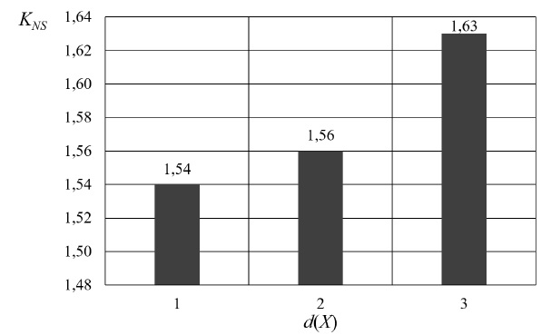 Анализ результатов исследований показывает, что в соответствии с критерием качества классификации нормального и шунтового режимов (8) классы с использованием моделей (2), (4) и (6) распознаются правильно, так как KNS > 1,2. Причем условие критерия качества классификации выполняется с запасом. Так, моделью минимальной сложности с двумя признаками реальный критерий KNS = 1,54, что превышает допустимое значение в 1,28 раза, моделью с тремя признаками KNS = 1,55, и это превышает в 1,3 раза, а моделью с четырьмя признаками KNS = 1,63, и превышение составляет 1,36 раза.