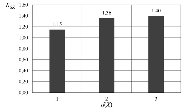 Анализ результатов исследования качества классификации классов шунтового и контрольного режимов критерием KSK показывает, что с использованием модели минимальной сложности с двумя признаками реальный критерий KSK = 1,15, что ниже порога допустимого значения 1,2, то есть классы неправильно классифицируются, а с использованием модели с тремя признаками KSK = 1,36, что превышает порог допустимого значения в 1,13 раза, а с использованием модели с четырьмя признаками KSK = 1,4, и превышение составляет 1,17 раза, и следовательно, классы распознаются правильно. Таким образом, моделью минимальной сложности обученный классификатор не может распознать правильно все классы, так как диапазон дестабилизирующих воздействий значительный, а также большая длина рельсовой линии участка контроля. Вместе с тем добавление дополнительного признака «модуль напряжения на входе рельсовой линии» позволяет существенно повысить классифицирующие свойства модели.