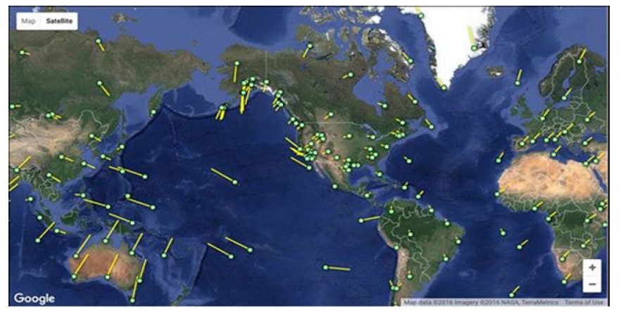 Представленная на рис. 1 карта является авторской разработкой ученых Калифорнийского Технологического института, созданной по данным измерений, выполненных группировкой из 30 спутников, входящих в глобальную систему позиционирования1. Эти данные успешно применяются для навигации и точного измерения геодезических координат различных объектов.