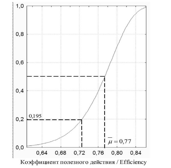 В таблице 2 представлены параметры закона распределения Вейбулла объединенной выборки общего коэффициента полезного действия гидроцилиндров.