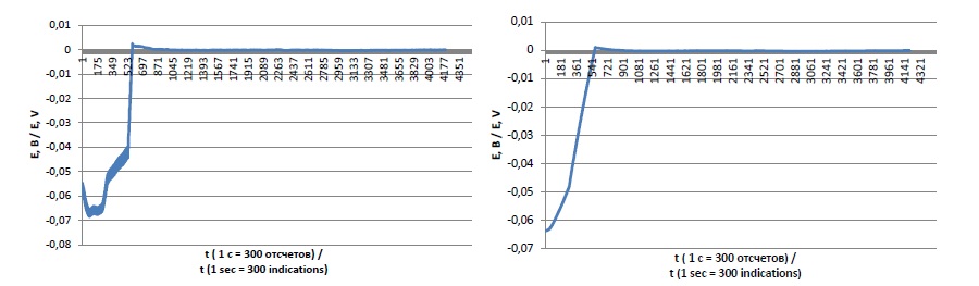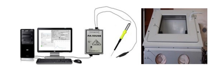 Перед измерением проводилась калибровка АЦП ЛА-50 USB с помощью магазина сопротивлений (производство Германия), источника постоянного тока и измерительных электродов. Магазин сопротивлений позволил смоделировать выходное значение в диапазоне от –200 мВ до –55 мВ.