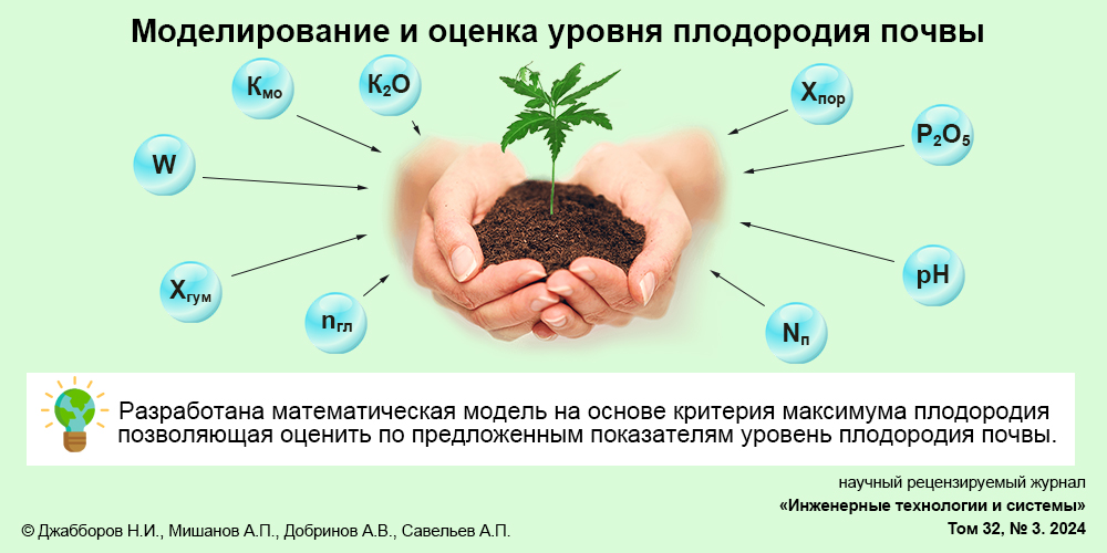 Introduction. The relevance of the study is related to the problem of increasing soil fertility. The value of soil as the main means of agricultural production in a specific economic infrastructure is determined by its fertility that is its ability to satisfy the needs of specific plants for nutrients, water, and to provide the root system of plants with air and heat. The effectiveness of increasing soil fertility depends on objective soil assessments and forecasting. Therefore, mathematical modeling for the fertility level of soils for the agricultural production is an urgent task for agroengineering studies.