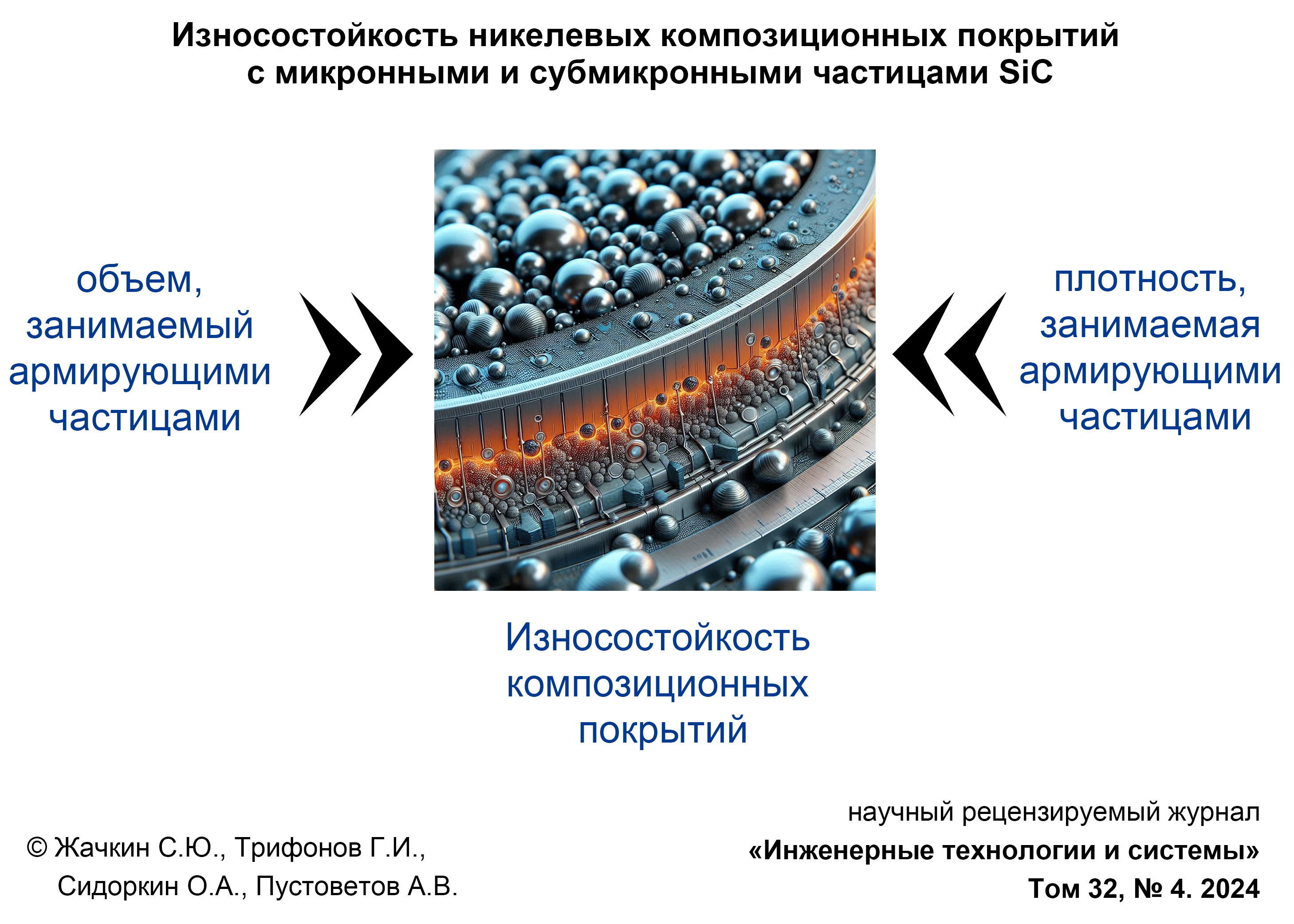 Обсуждение и заключение. Определено, что наилучшая износостойкость при скольжении получена в случае использования композиционных покрытий Ni-SiC, содержащих 4–5 объемных процента субмикронных частиц SiC. Исследование показало, что размер и плотность частиц SiC в растворе для покрытия имеют важное значение при получении гальванически износостойких композиционных покрытий, так как основываются на связи между плотностью осажденных частиц и плотностью частиц в растворе.