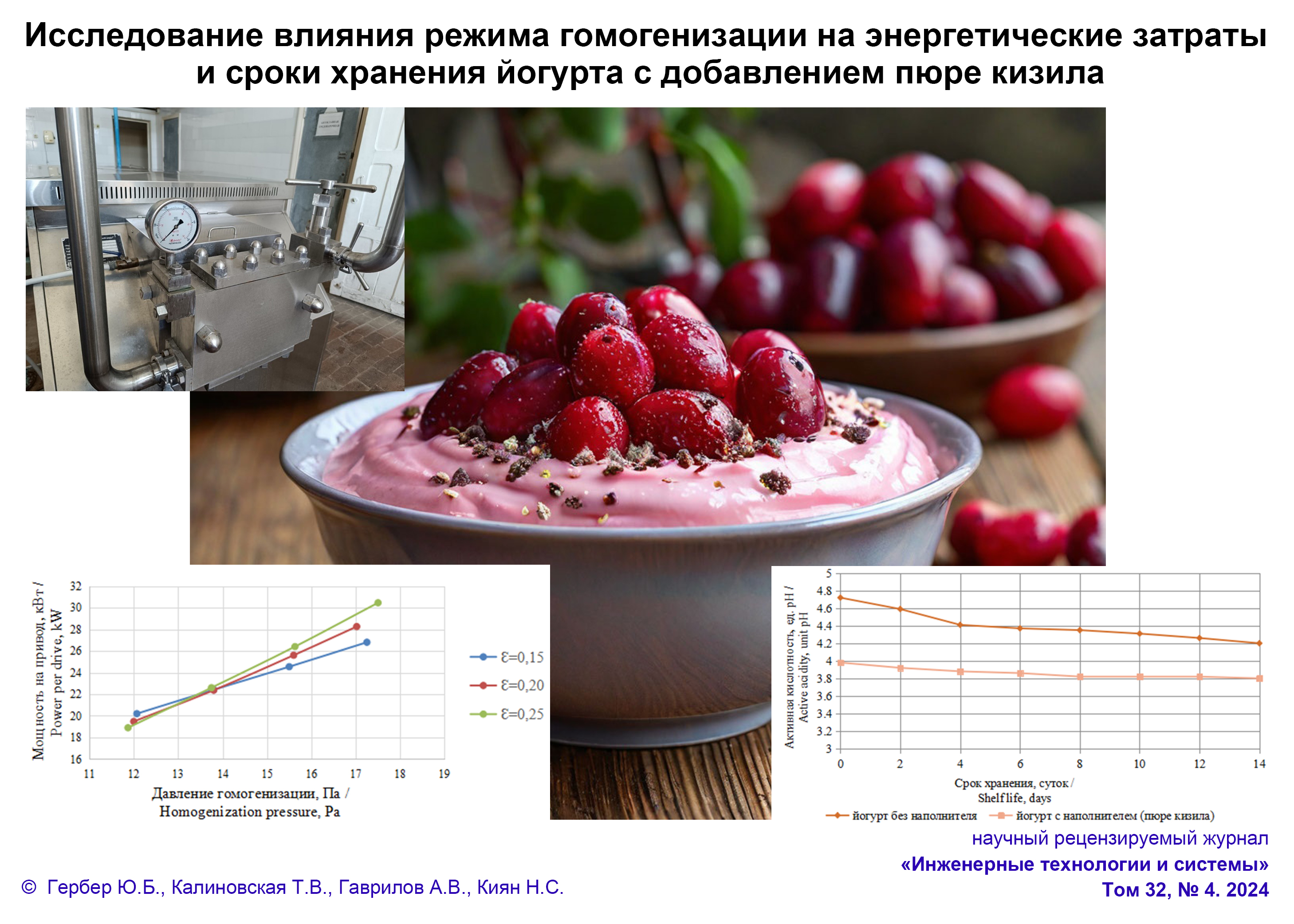Исследование влияния режима гомогенизации на энергетические затраты и сроки хранения йогурта с добавлением пюре кизила