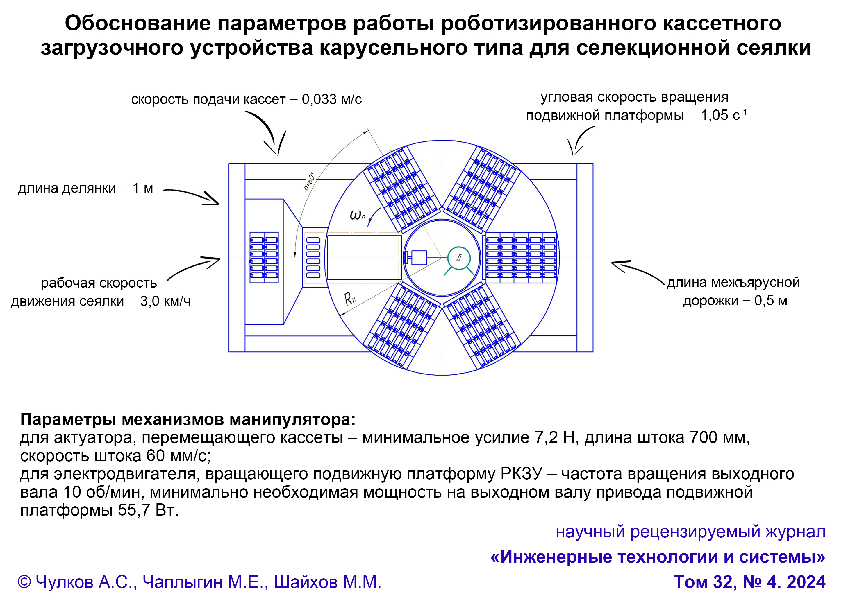 Обоснование параметров работы роботизированного кассетного загрузочного устройства карусельного типа для селекционной сеялки