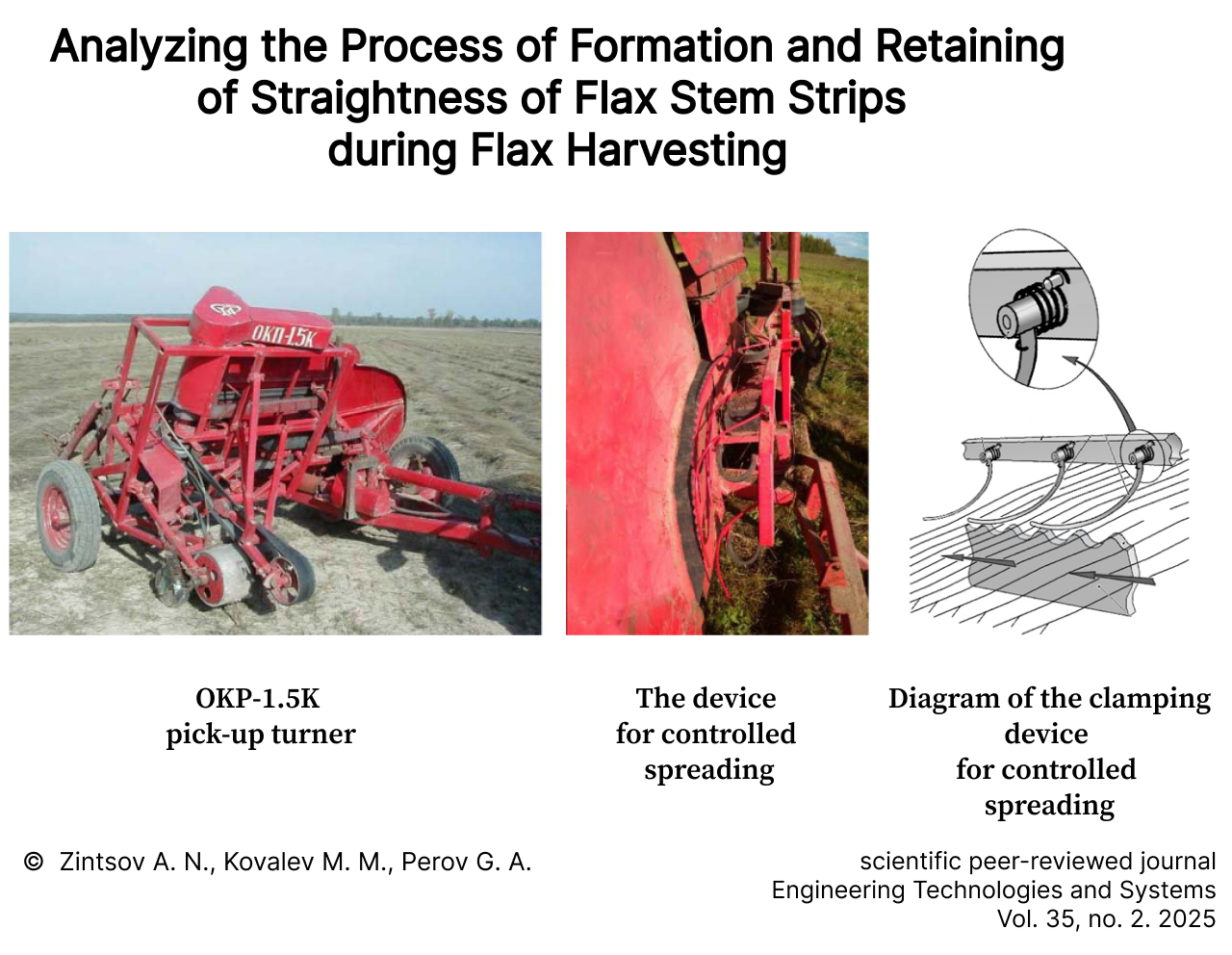 Introduction. The effectiveness of flax cultivation largely depends on the degree of mechanization of harvesting processes. At the same time, a high productivity of flax stem pick-ups with minimal product losses can be ensured only when working on straight flax stem strips.