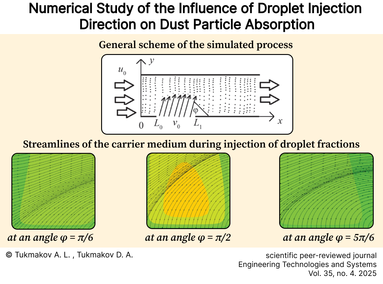Aim of the Study. The aim of the academic work was to study the effect of the injection direction of the droplet fraction jet on the intensity of the absorption of solid particles by liquid droplets.