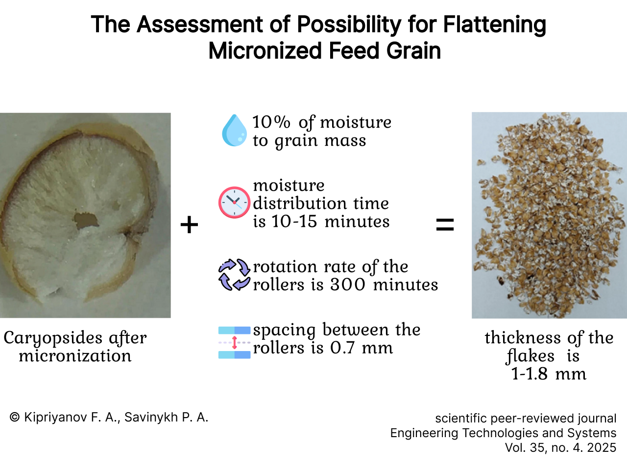 Introduction. The micronization of feed grain allows improving the digestibility of grain feed. However, flattening micronized grain to feed animals is difficult because of its increased fragility that results in grain overflattening during the flattening process.