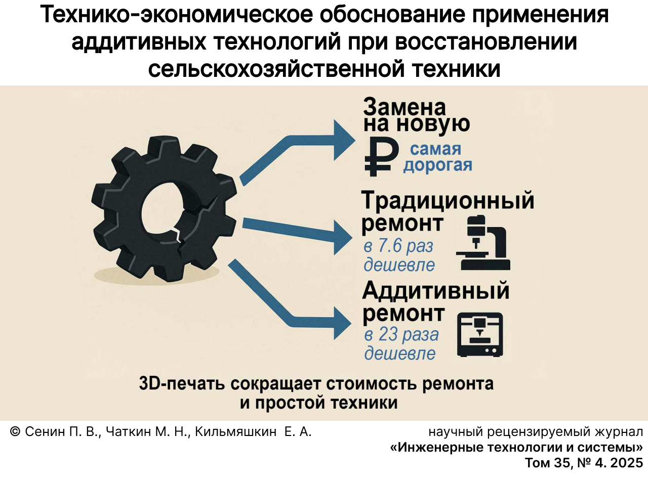 Aim of the Study. The study is aimed at evaluating the efficiency of additive manufacturing in repairing agricultural machinery in the agro-industrial complex to reduce the time and cost of services.
