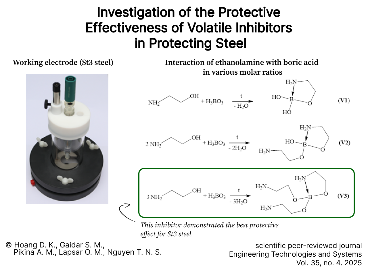 Discussion and Conclusion. The results obtained have potential for practical application in atmospheric corrosion protection of ferrous and non-ferrous metals. A promising area of application is the protection of steel equipment and electrical protection systems containing non-ferrous metals (copper, brass) using volatile inhibitors in agricultural production, mechanical engineering, and other fields.