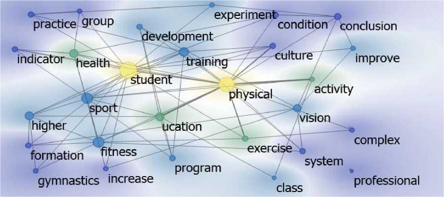 Ключевыми словами первого кластера стали: fitness, physical, training, strength. Таким образом, первый кластер включил в себя статьи по направлению фитнес-йоги в контексте улучшения физических показателей (рис. 11, 12).