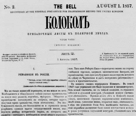 Вольная русская типография пыталась будить, не народ, конечно, до народа его листки, журналы и книги не доходили, а провоцировать и пугать образованное общество. Герцен начал с издания альманаха «Полярная звезда», где печатал то, что не могло выйти в России, потом сборники «Голоса из России», куда стали писать его приятели-либералы, и, наконец, главный продукт его типографии — газета «Колокол» (1857–1867)