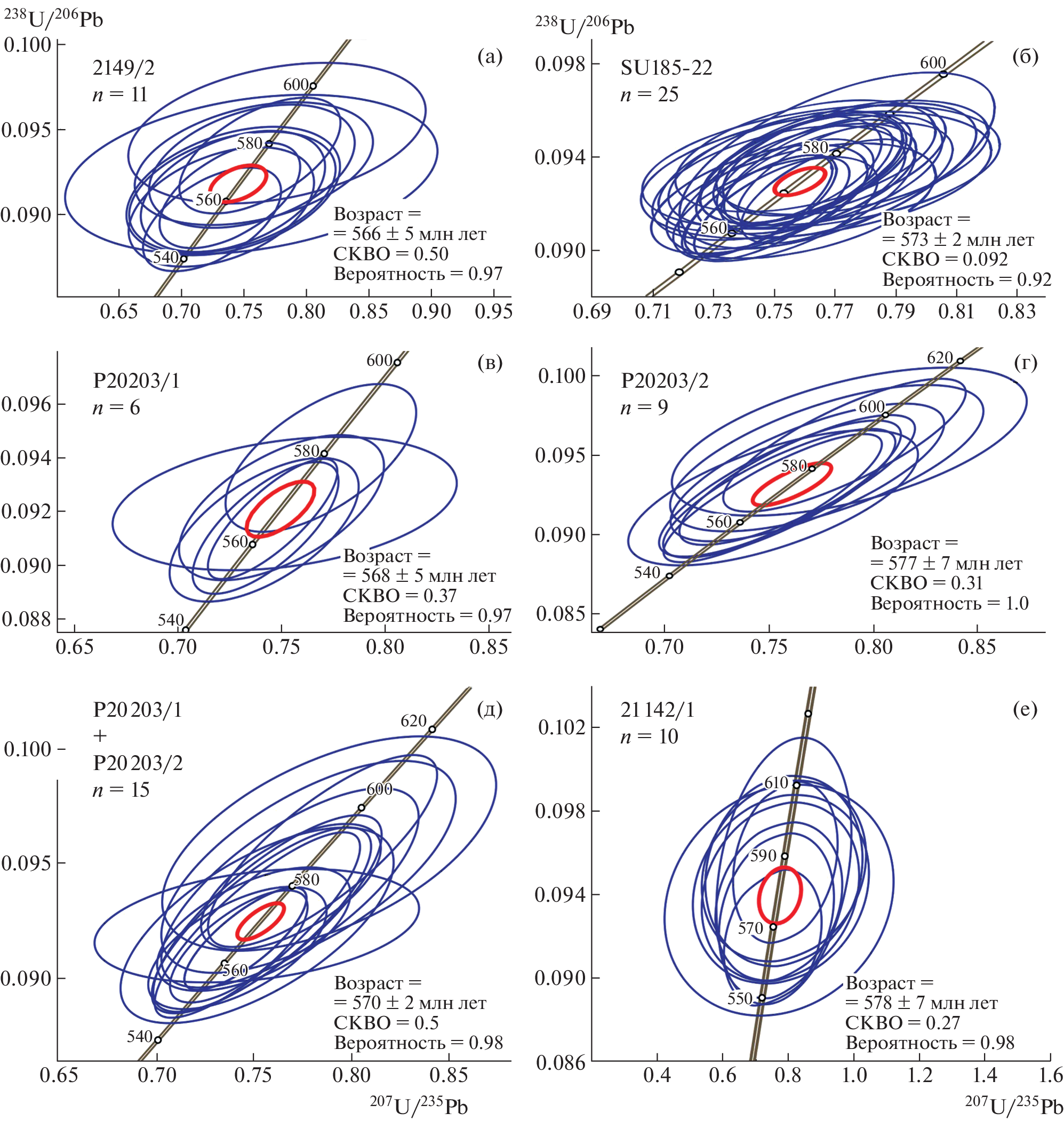 For accessory zircon from ash tuffs of the Basu and Zigan Fms of the Asha Vendian (Ediacaran) Group of the Southern Urals obtained isotopic U–Pb age (SIMS (SHRIMP II) и La–ICP–MS). The compositions of rare-metal enriched tuffs correspond to rhyolites, comendites, trachytes, trachyandesites. The concordant value of the U–Pb age of zircon from the tuffs of the Basu Formation is 578 ± 7, 577 ± 7 and 568 ± 5 Ma (SHRIMP II). The age of the zircon from the other two points of the Basu Formation is 573 ± 4 and 574 ± 3 Ma (La–ICP–MS). The age of zircons from the tuffs of the Zigan Formation is 566 ± 5 Ma (SHRIMP II). Tuffs accumulated in the hinterland of the marginal continental volcanic belt.