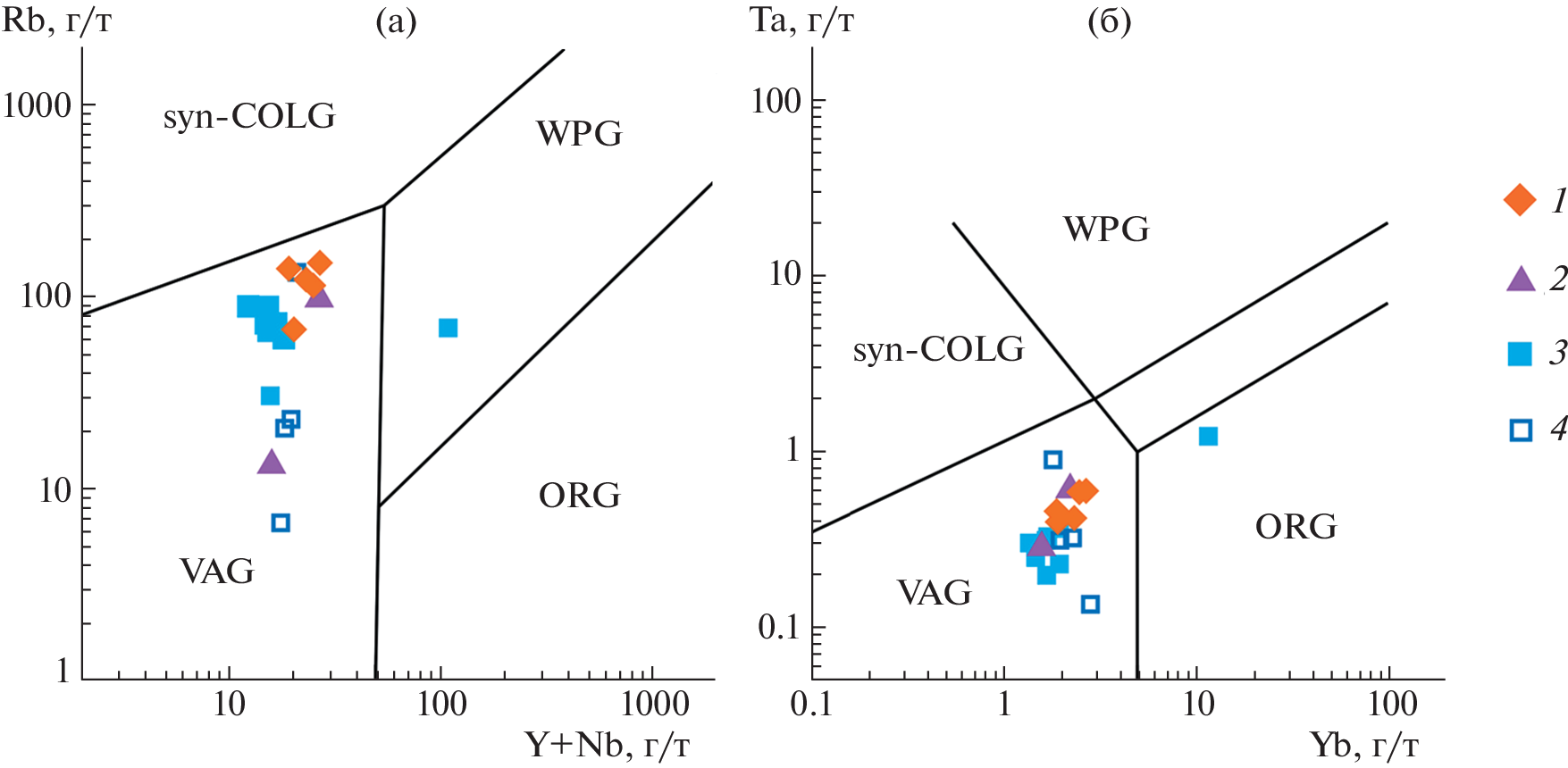 - Pearce J.A., Harris N.B.W., Tindle A.G. Trace element discrimination diagrams for the tectonic interpretation of granitic rocks // J. of Petrology. 1984. V. 25. № 4. P. 956–983. https://doi.org/10.1093/petrology/25.4.956