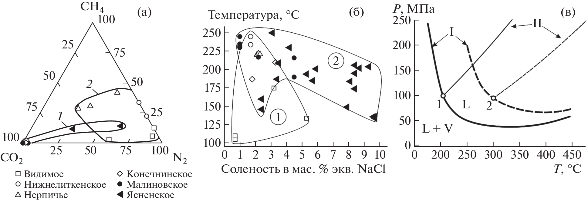- Akinfiev N.N., Diamond L.W. Thermodynamic model of aqueous CO2–H2O–NaCl solutions from –22 to 100°C and from 0.1 to 100MPa // Fluid Phase Equilibria. 2010. V. 295. P. 104–124.