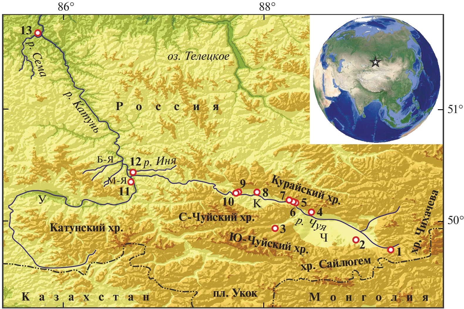 - Carling P.A., Kirkbride A.D., Parnachov S., et al. Late Quaternary catastrophic flooding in the Altai mountains of south–central Siberia: a synoptic overview and an introduction to flood deposit sedimentology. Flood and megaflood processes and deposits: recent and ancient examples. 2002. P. 17–35.